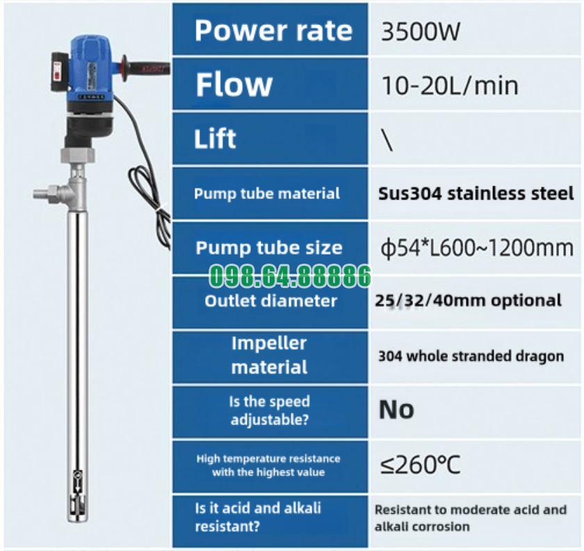 Việc này có thể làm giảm tuổi thọ và gây hư hỏng nhanh chóng cho Bơm điện cầm tay dạng trục đứng JDT-3500W-JLG260.