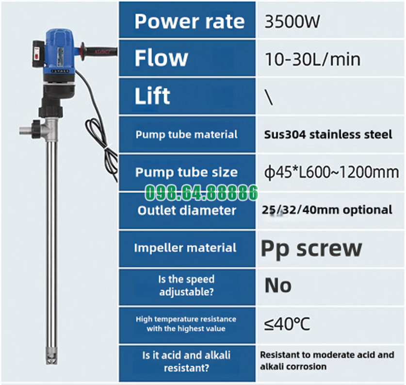 Với khả năng vận hành ổn định, thiết kế cầm tay tiện lợi và phạm vi ứng dụng rộng, Bơm trục vít cầm tay cho chất lỏng đặc JDT-3500W-LG là lựa chọn phù hợp cho doanh nghiệp cần một thiết bị bơm chất lỏng đặc đa năng, hiệu quả và bền bỉ.