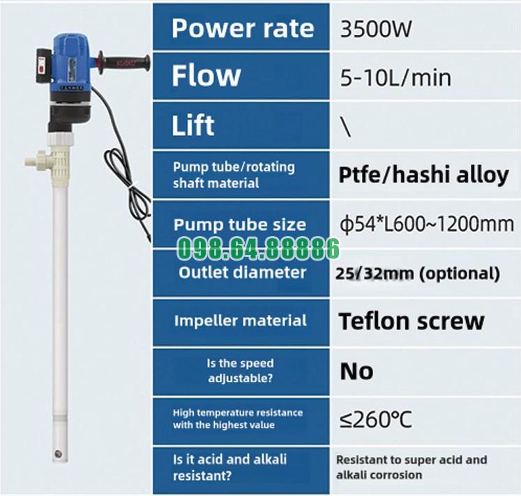 Phù hợp với thùng phuy 200L và bồn chứa sâu, giúp hút tối đa chất lỏng.