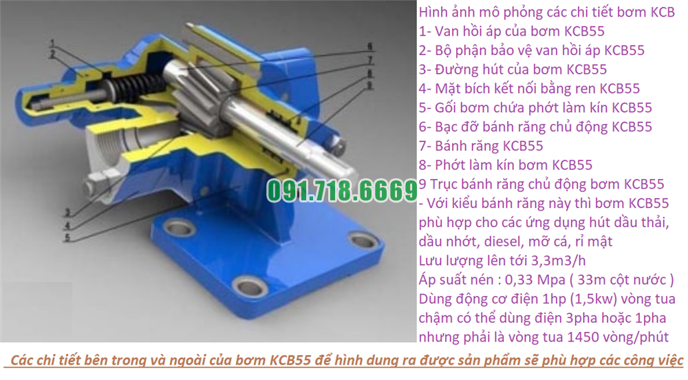 Ảnh đặc điểm chi tiết của bơm bánh răng vỏ gang thép model KCB55