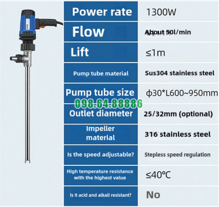 Bơm bơm rót chất lỏng JDT-1300W-30 SUS304