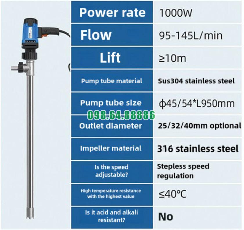 Bơm cấp chất lỏng từ phuy JDT-1000W-304SUS