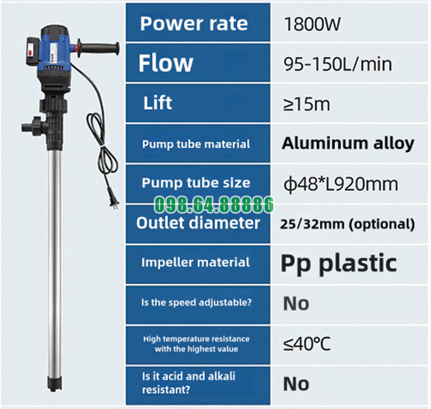 Bơm điện thùng phuy cao cấp JDT-1800W-L92 được thiết kế theo kích thước thùng phuy tiêu chuẩn đang được sử dụng rộng rãi trên thị trường. Trục bơm L92 có chiều dài hợp lý, cho phép tiếp cận sâu vào bên trong thùng mà vẫn đảm bảo an toàn và hiệu quả hút.