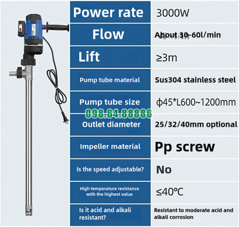 Động cơ 3000W cung cấp mô-men xoắn cao, cho phép trục vít quay ổn định dù gặp lực cản lớn từ chất lỏng đặc. Khi động cơ luôn làm việc trong trạng thái dư lực, bơm ít rung, ít ồn và giảm nguy cơ quá tải.