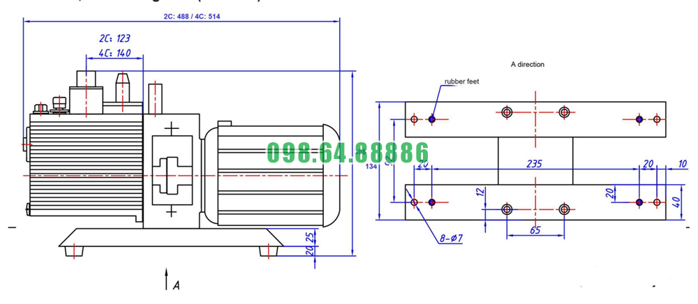 Thiết kế mặt bích và gioăng làm kín của Bơm SouzVac 2XZ-6C công suất 1.1 kW