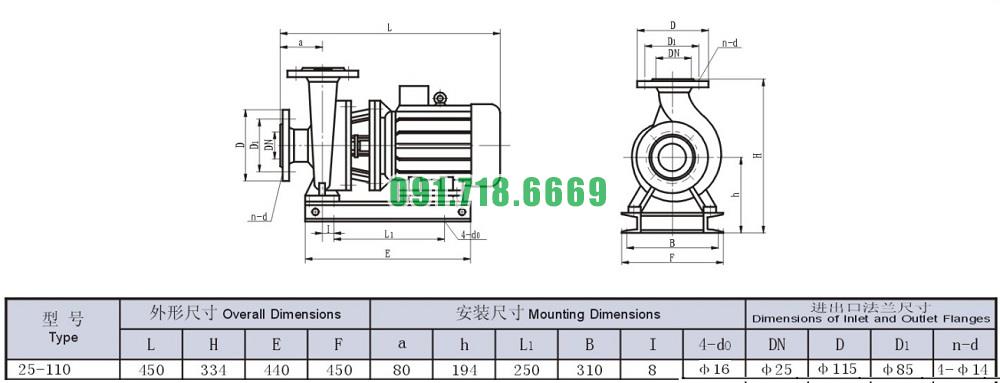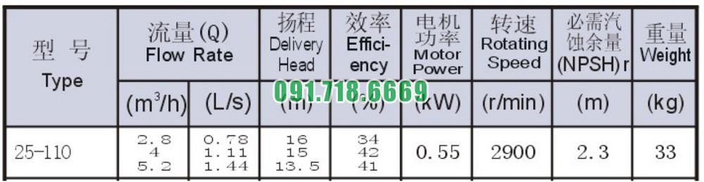 Bơm li tâm trục ngang model ISW25-110 công suất 1.44 L/s