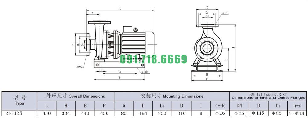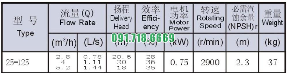 Bơm li tâm trục ngang model ISW25-125 công suất 1.44 L/s