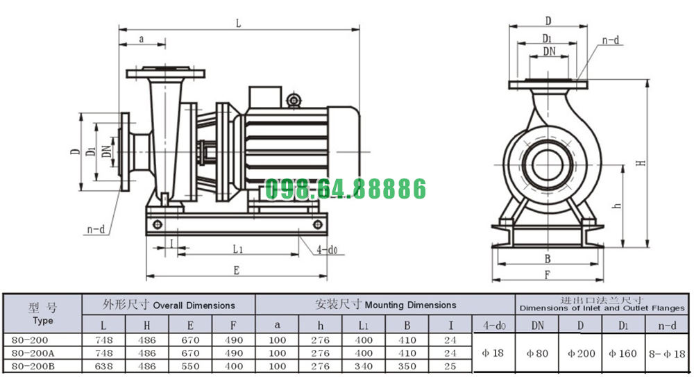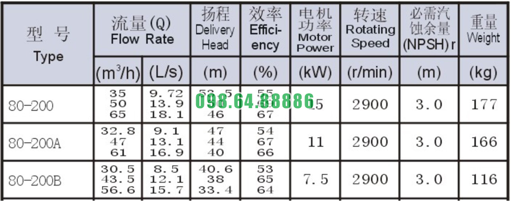 Bơm li tâm trục ngang model SLW80-ISW80-200 công suất 18.1 L/s