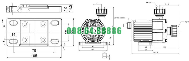 Hình ảnh cấu tạo và kích thước bản vẽ chi tiết bơm hóa chất điện 24v và 48v
