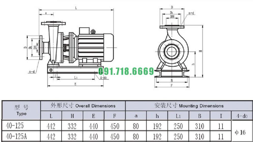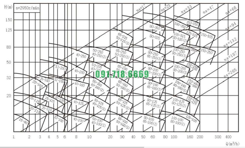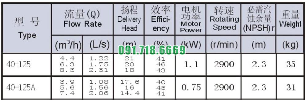 Bơm nước nằm ngang SLW-ISW40-125 năng suất từ 41% - 46%