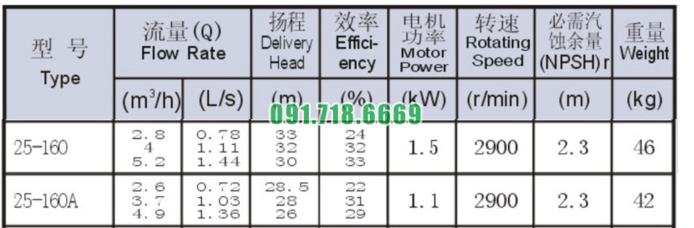 Bơm nước trục ngang ISW25-160 hiệu năng 33%