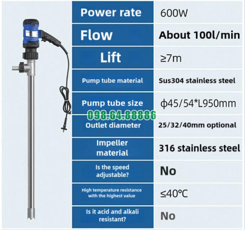 Bơm sang chiết dầu loãng model JDT-600W-304SUS