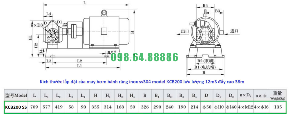 Máy bơm bánh răng KCB200 có động cơ 4kw áp suất 3.3 bar
