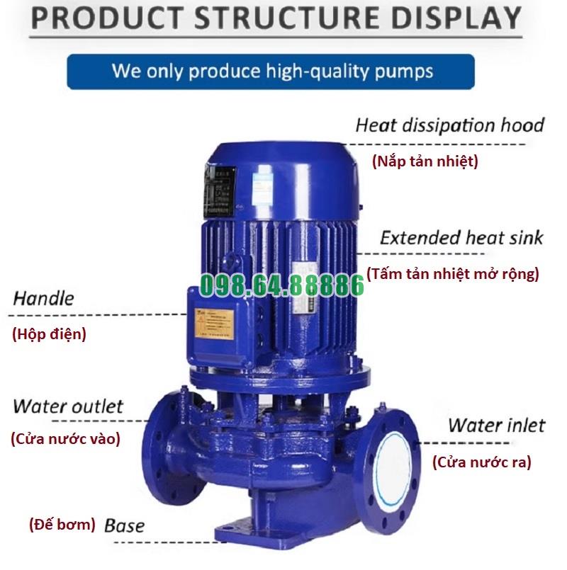 Máy bơm hút xả đặt nằm thẳng, bơm ly tâm, bơm trục đứng ISG65-315A, IRG65-315A 22kw