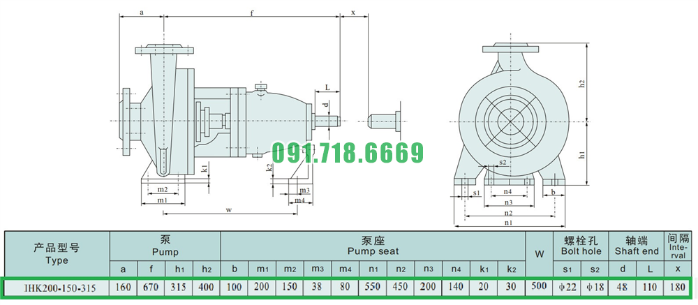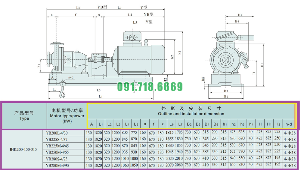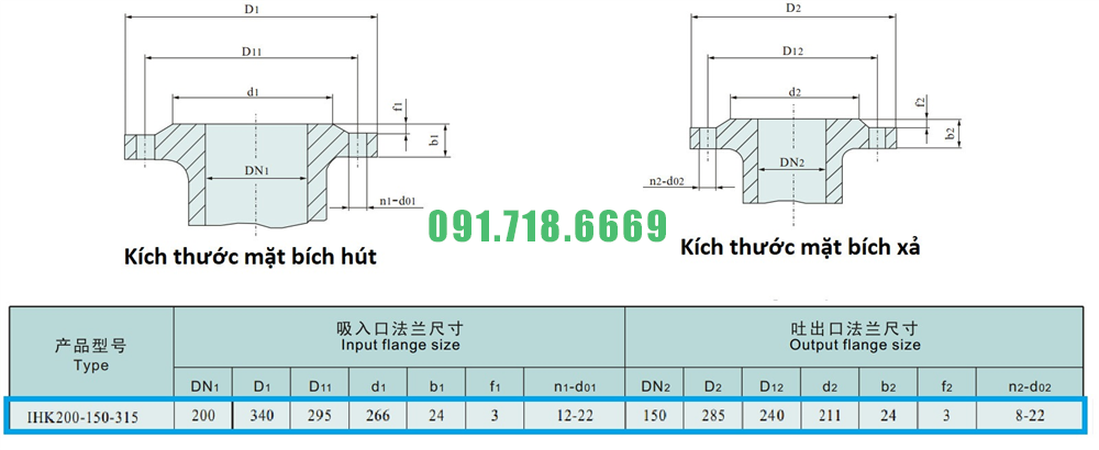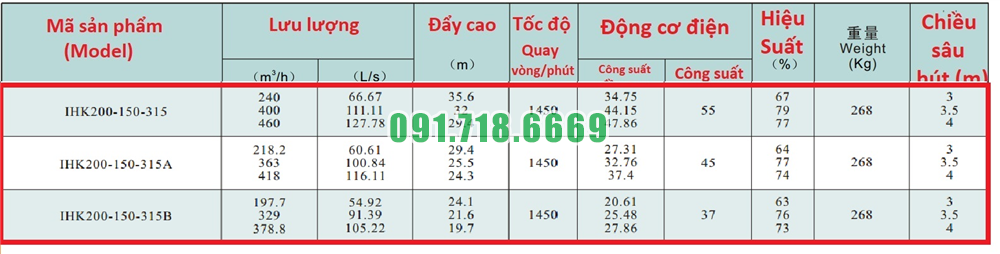 Máy bơm nước li tâm trục ngang cánh hở IHK200-150-315 động cơ điện 55kw