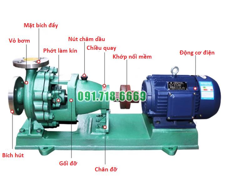 Máy bơm nước li tâm trục ngang cánh hở IHK200-150-315 với động cơ điện 55kW thường có cấu tạo chung gồm: