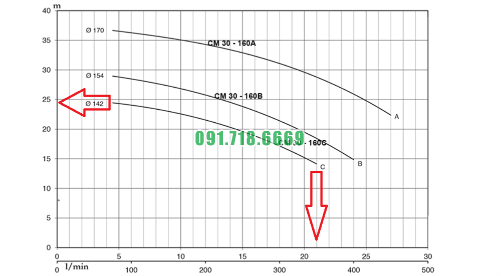 Hiệu suất máy bơm nước sạch li tâm trục ngang CM32-160C đường kính 32 mm
